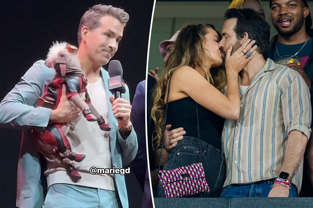Reynolds, 47, posed with the pooch while walking the “Deadpool & Wolverine” red carpet with Hugh Jackman in London on Wednesday.
