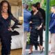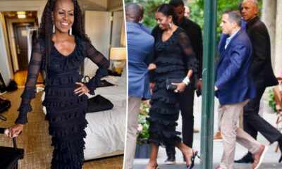 She dressed to impress. On Tuesday evening, Michelle Obama slipped into a black ruffled set for a date night with husband Barack in New York City,...