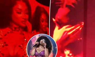 Megan Thee Stallion choked back tears onstage in Tampa, Fla., during her Hot Girl Summer tour. A fan video captured the “Hiss” rapper looking overcome with...