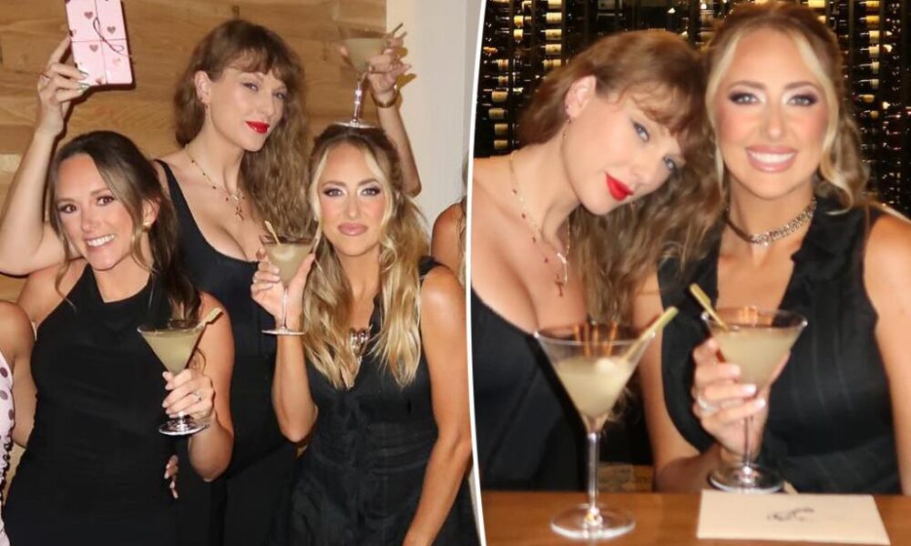 Bride-to-be Taylor Swift practiced raising her glass in a new snapshot from Brittany Mahomes’ 30th birthday celebration. In the first photo of an Instagram carousel shared...