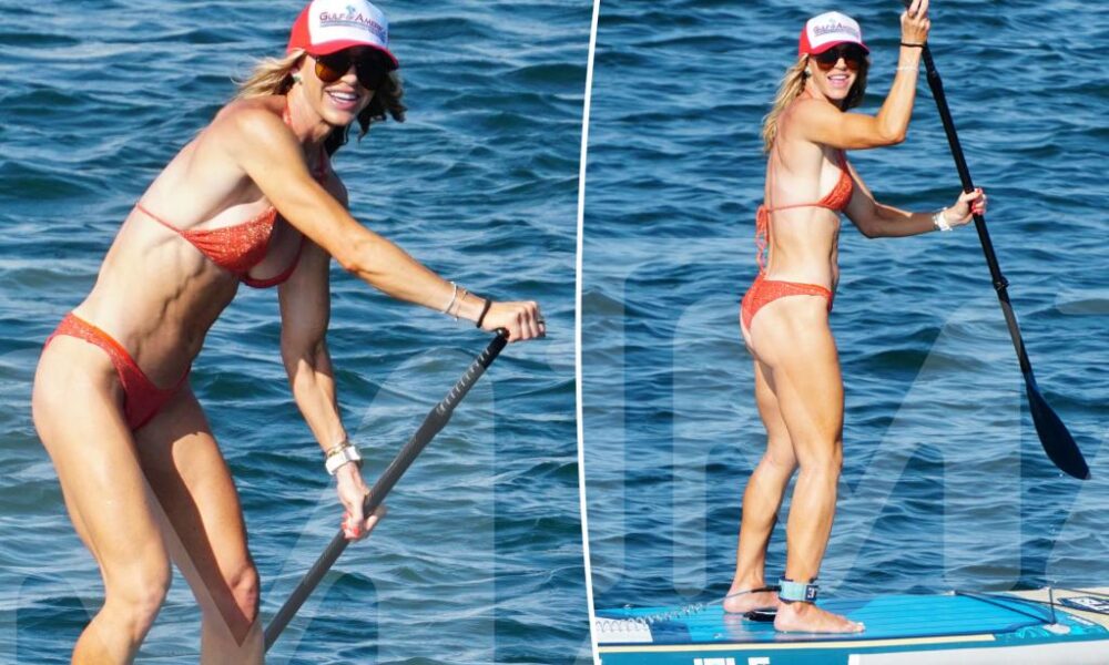Lara Trump flaunted her toned figure while paddleboarding in Rhode Island with her husband, Eric Trump. The 42-year-old politician was photographed wearing an orange two-piece bathing...