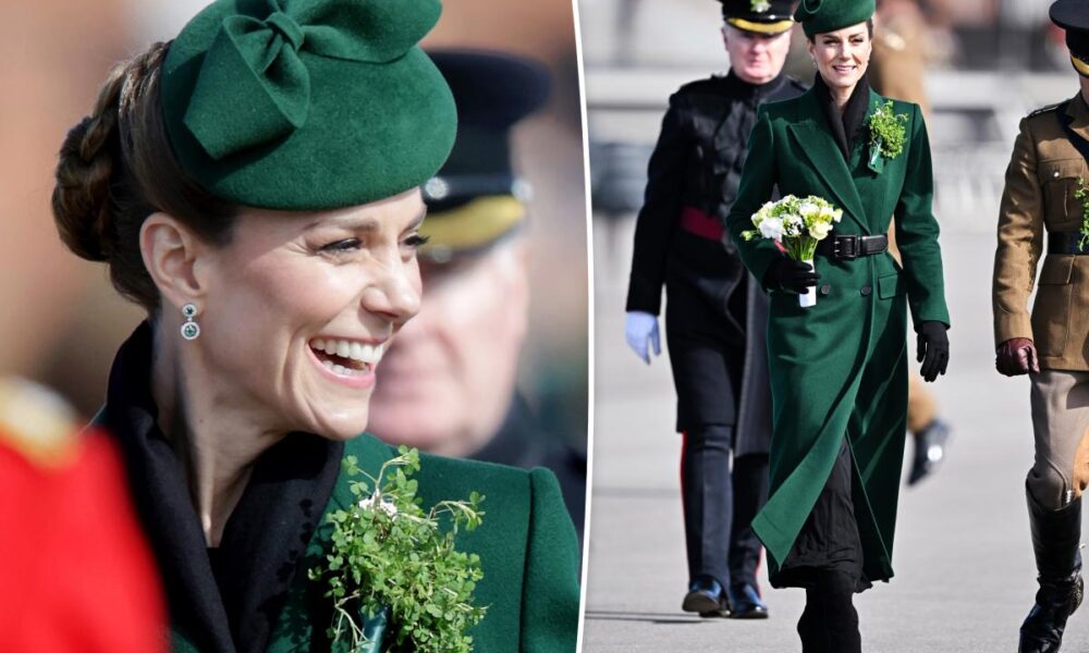 The luck of the Irish looks good on Kate Middleton. The Princess of Wales, 44, stepped out at Mons Barracks in Aldershot, England, on Tuesday for...