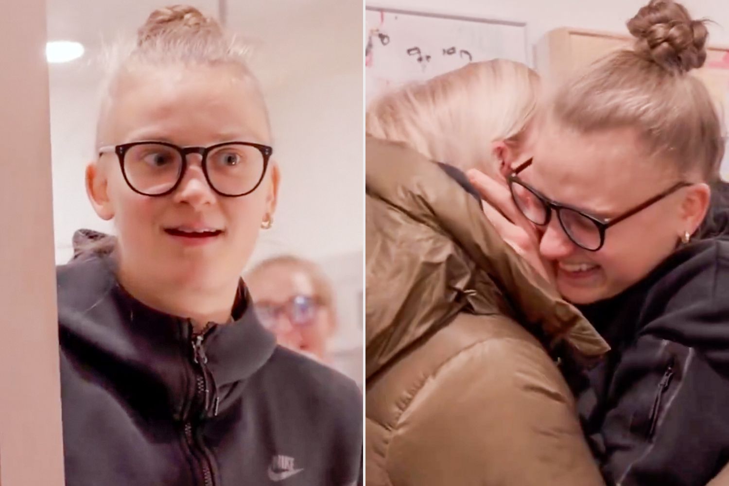 While her teammates yelled “surprise,” Rasa walked closer to Augustinaite. They immediately began to cry, and the two immediately hugged. Some of Augustinaite’s teammates cried during the reunion as well.