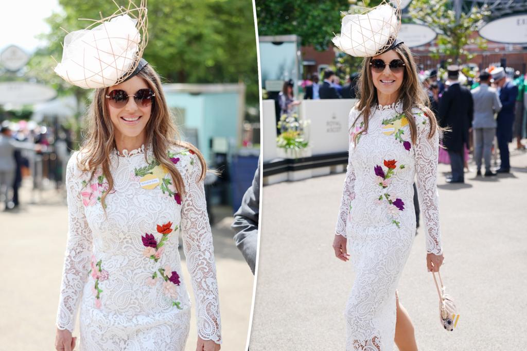 Elizabeth Hurley looks lovely in lace dress and a fanciful hat at Royal Ascot 2024