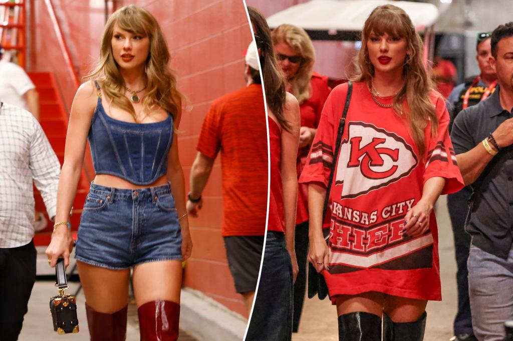 While supporting Kelce several days later, the “Is It Over Now?” hitmaker selected a ’90s-era Chiefs sweatshirt procured from Kansas City vintage story Westside Storey.