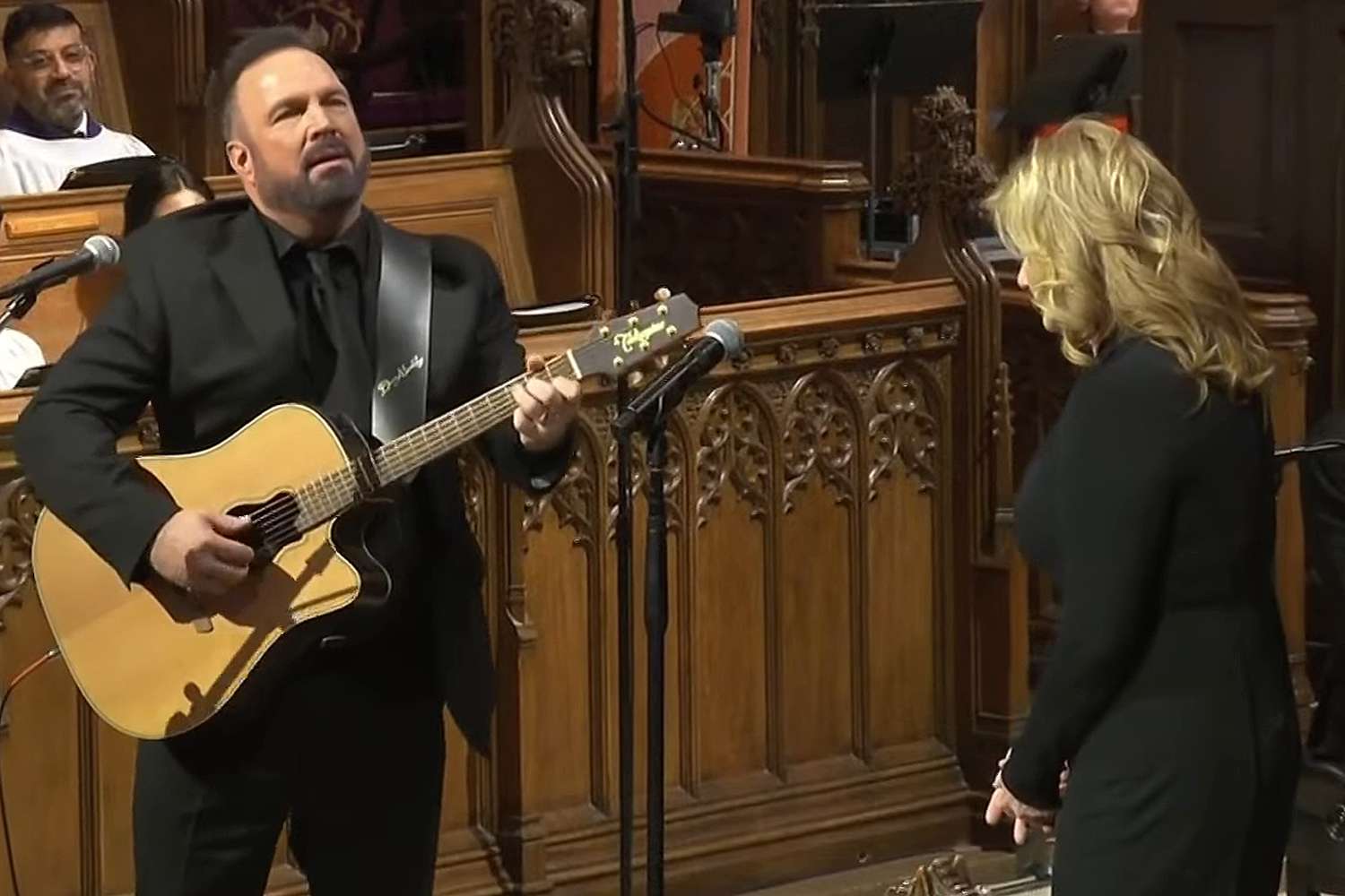 The country singers played a rendition of “Imagine” by John Lennon, a reprise from their tribute to Rosalynn Carter at her funeral in 2023. As Brooks, 62, played the acoustic guitar, he harmonized with wife Yearwood, 60, while the funeral’s choir provided background vocals on the song, one of the late president’s favorites.