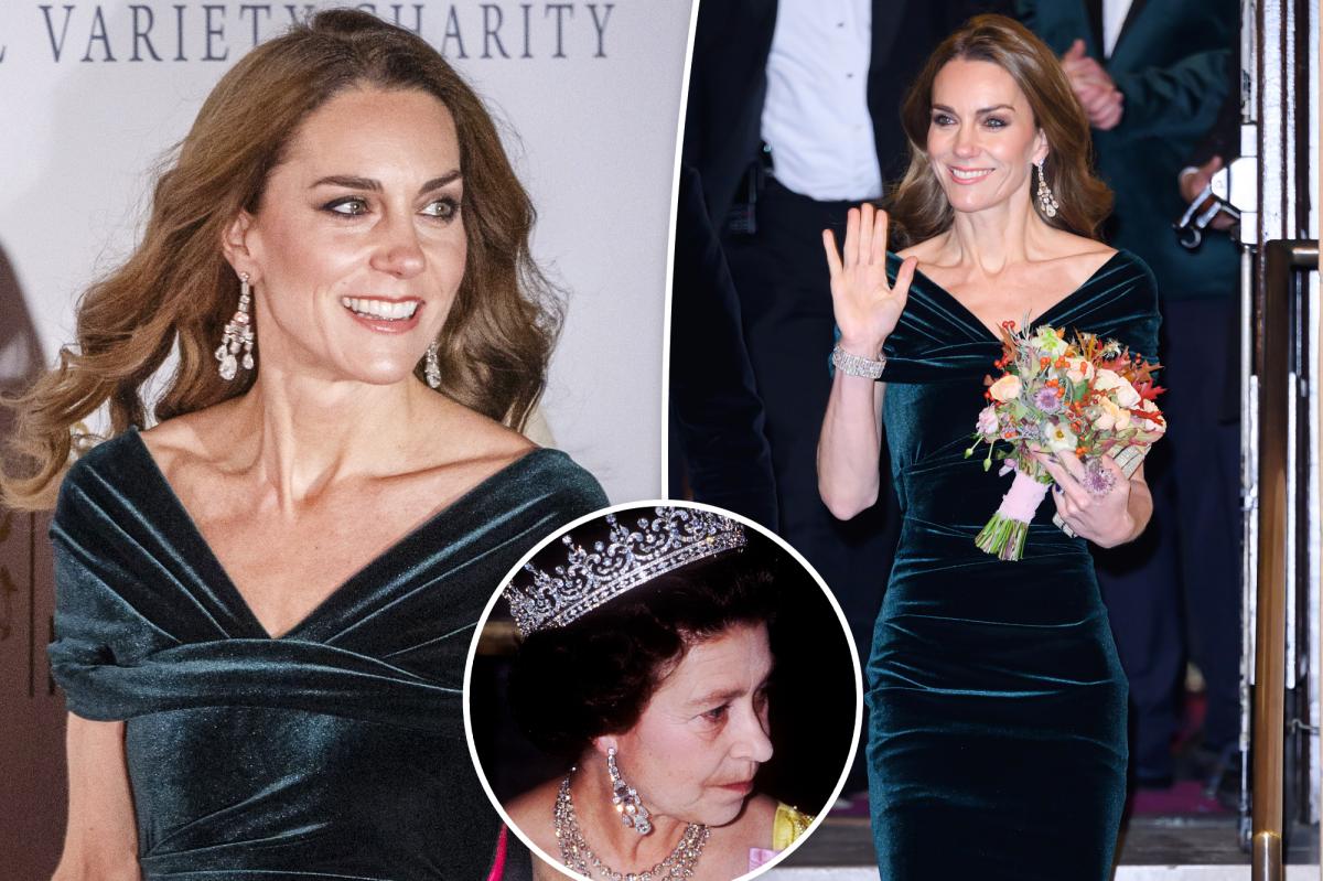 Kate Middleton wears green velvet gown, Queen’s jewels to Royal Variety show
