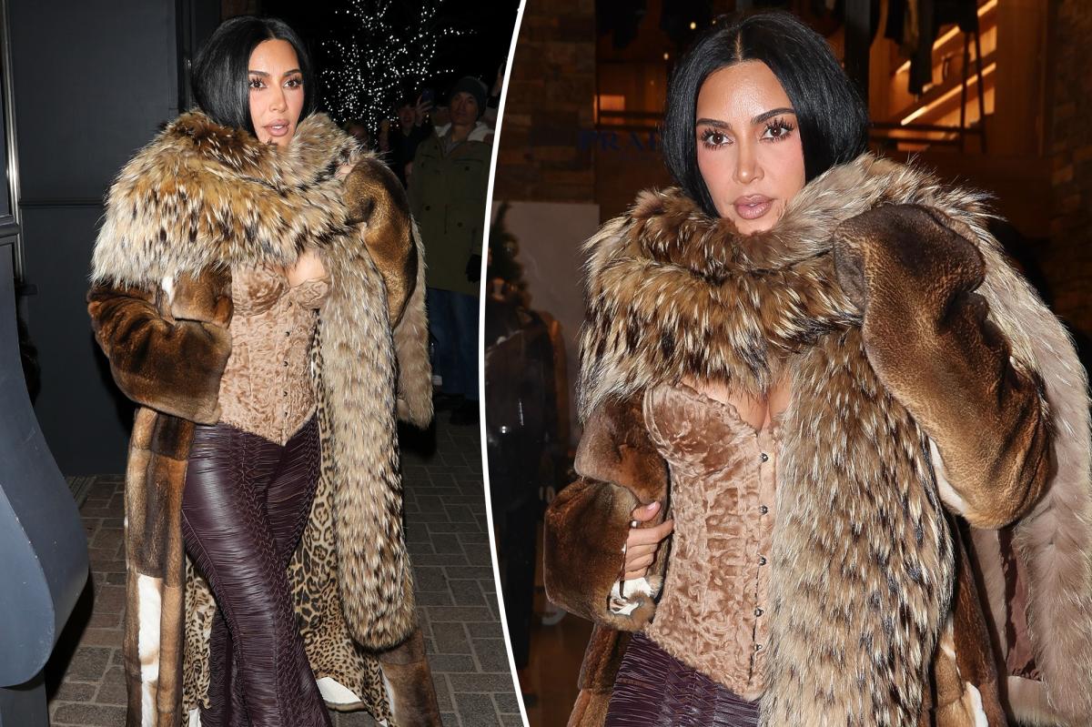 Kim Kardashian is beating the chill in Aspen, spotted wearing head-to-toe leather and fur on Thursday.