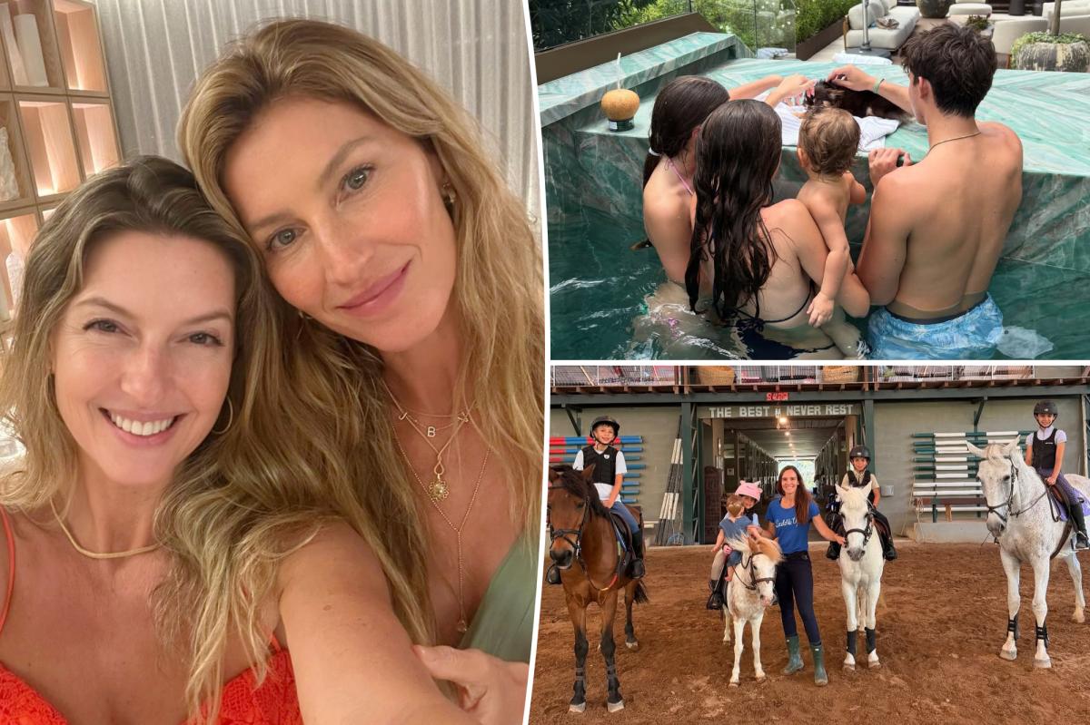 She also appeared to include a photo of the infant with his older siblings, Vivian, 13, and Benjamin, 16 — both of whom she shares with her ex-husband, Tom Brady — enjoying a dip in the pool together.