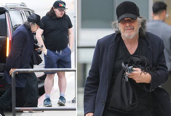EXCLUSIVE: Dog-tired afternoon! Exhausted-looking Al Pacino, 83, hits cinema with son Anton James, 22, after his girlfriend Noor Alfallah, 29, revealed she’s pregnant with Hollywood icon’s fourth child