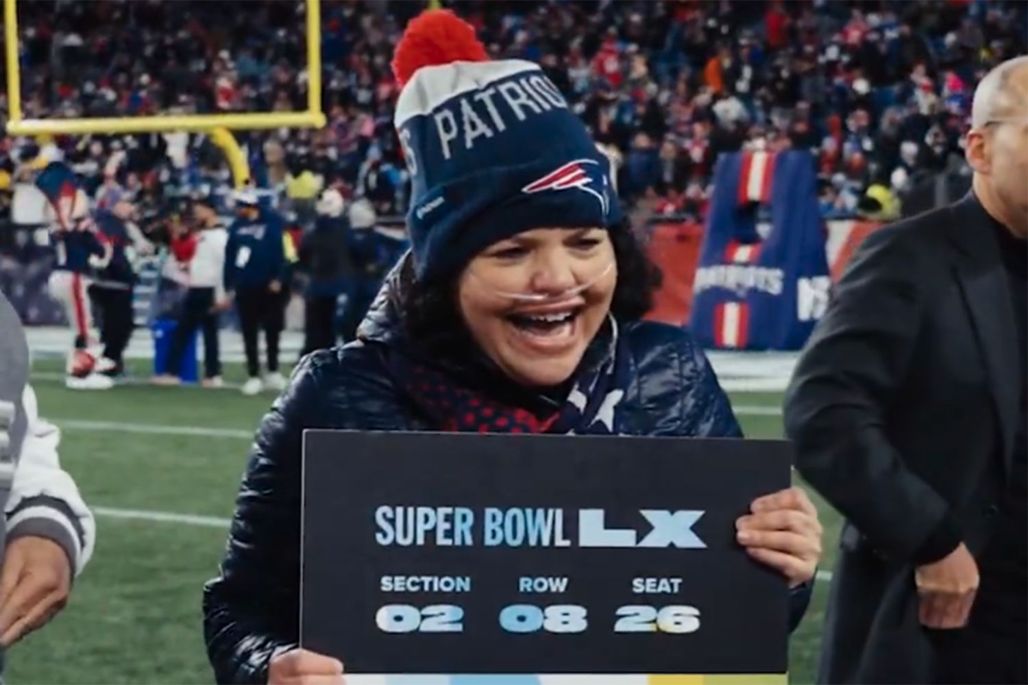 After being surprised with the Super Bowl tickets by the Krafts on Jan. 14, Sepulveda could be heard telling them in the video shared by the team, “Are you serious? … That means so much to me.”