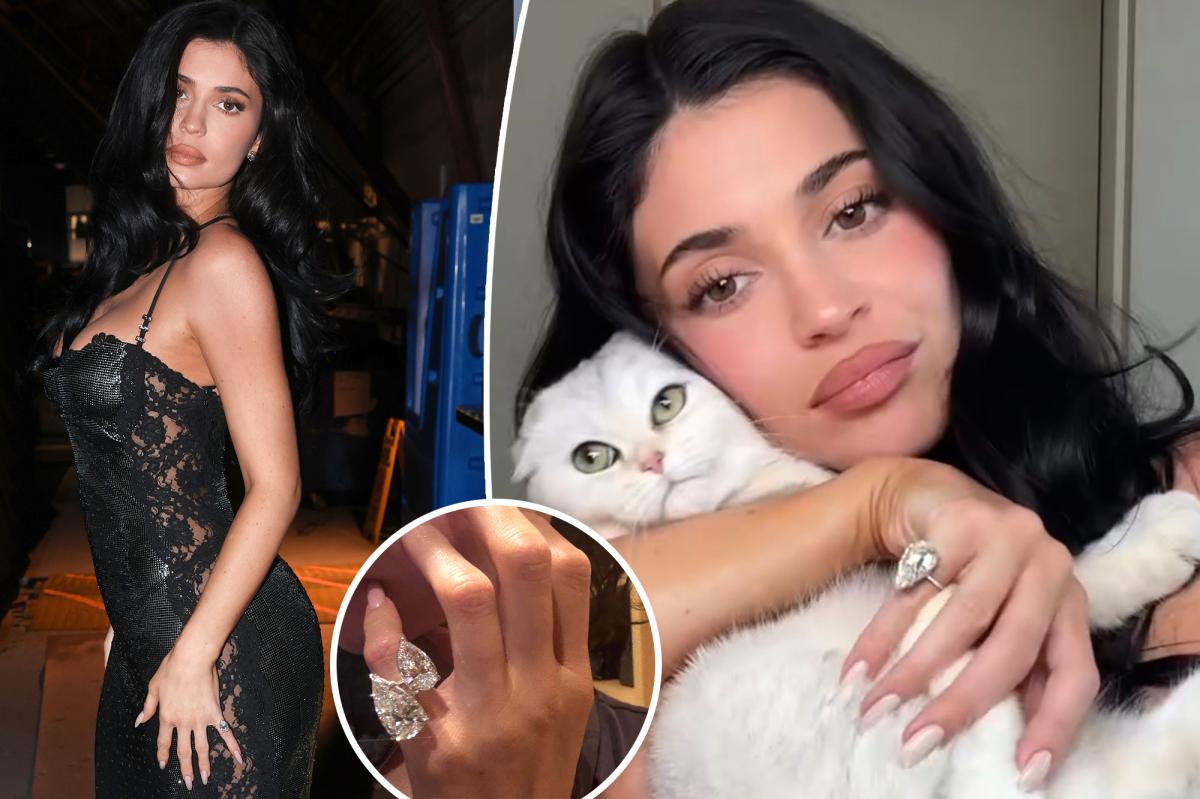See Kylie Jenner’s enormous pear-shaped diamond pinky ring stack