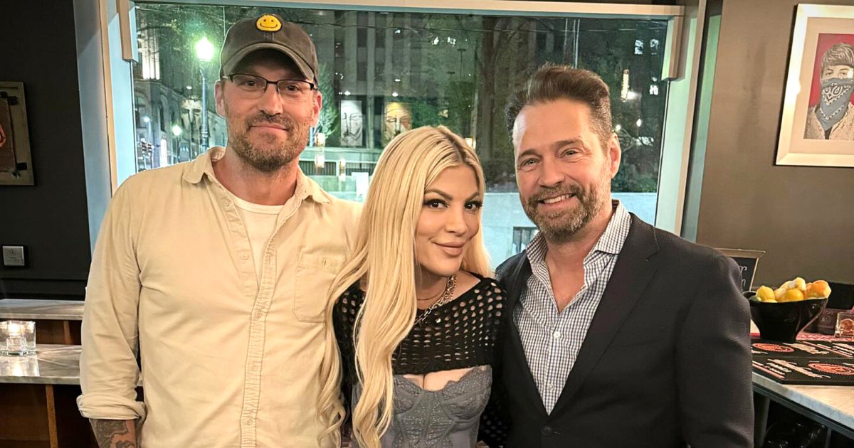 Tori Spelling Reunites With ‘90210’ Costars Brian Austin Green, Jason Priestley: ‘Donna Sandwich’
