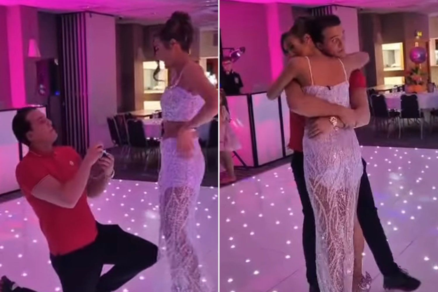 Venezuela’s mom, Paris Fury, also posted a video of the proposal on her own Instagram. Price and Venezuela can be seen standing on a dance floor. The birthday girl wore a white lace crop top and matching midi skirt with sheer panels for her party, while Price sported a red polo shirt and black pants.